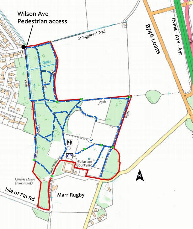 From B746/Loans, take the narrow lane signposted Marr Rugby.